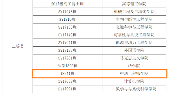 18241班级荣获二等奖,是全校29个获奖班集体中仅有的2个新生班集体之一。