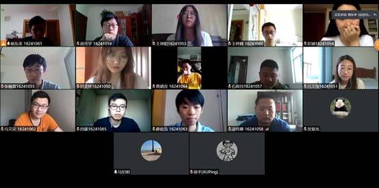 以小班为单位组织了线上的最后一次特殊班会暨思想道德答辩会,国内外的学生一同参加。在总结自己四年思想道德提升的同时,视频会议也一定程度上弥补了大家无法相见的遗憾。除了班主任外,班会还请到了学院领导班子成员、青年教师代表或辅导员代表参加。老师们更为我们提出了许多建议,让我们对自己有了更加清楚的认识,也让我们对未来有了更坚定的信心。